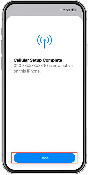 Tap “Done” once the eSIM is added