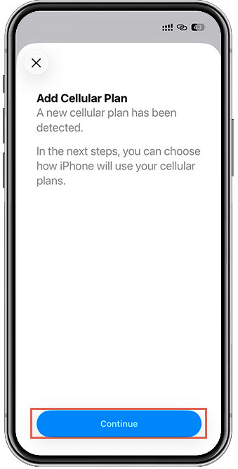 Tap “Continue” to add cellular plan
