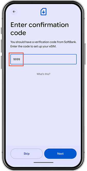 Enter “9999” as the confirmation code