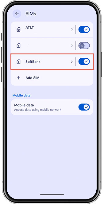 Select “SoftBank” or “Y!mobile” from the SIM list