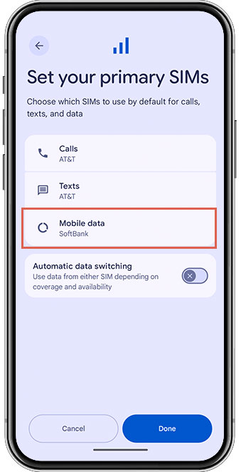 Set “SoftBank” or “Y!mobile” for Mobile Data and tap “Done”